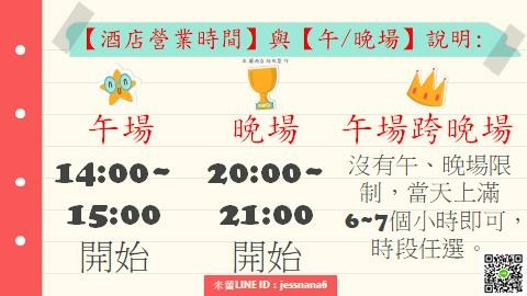 5.1.以「都會區」酒店下午3點開始營業,到隔天早上7點,這其中上滿7小時即可,時段可自選但需固定為佳。