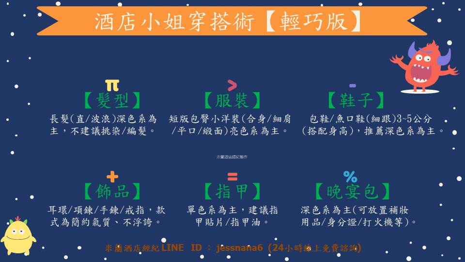看看其他公關的素質與裝扮,也會知道自己的定位在哪裡,並且可以看到客人層次與管理制度。